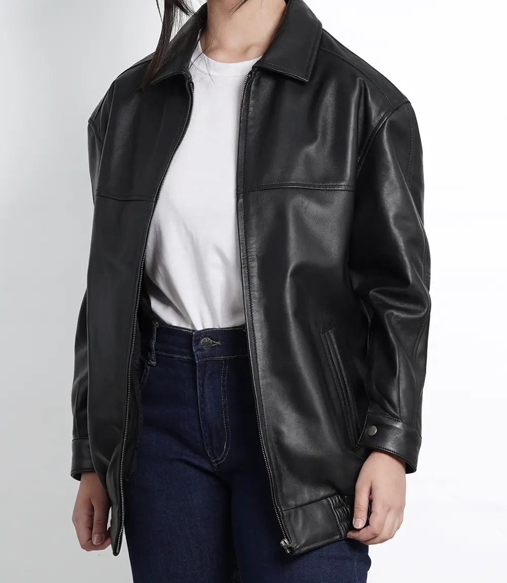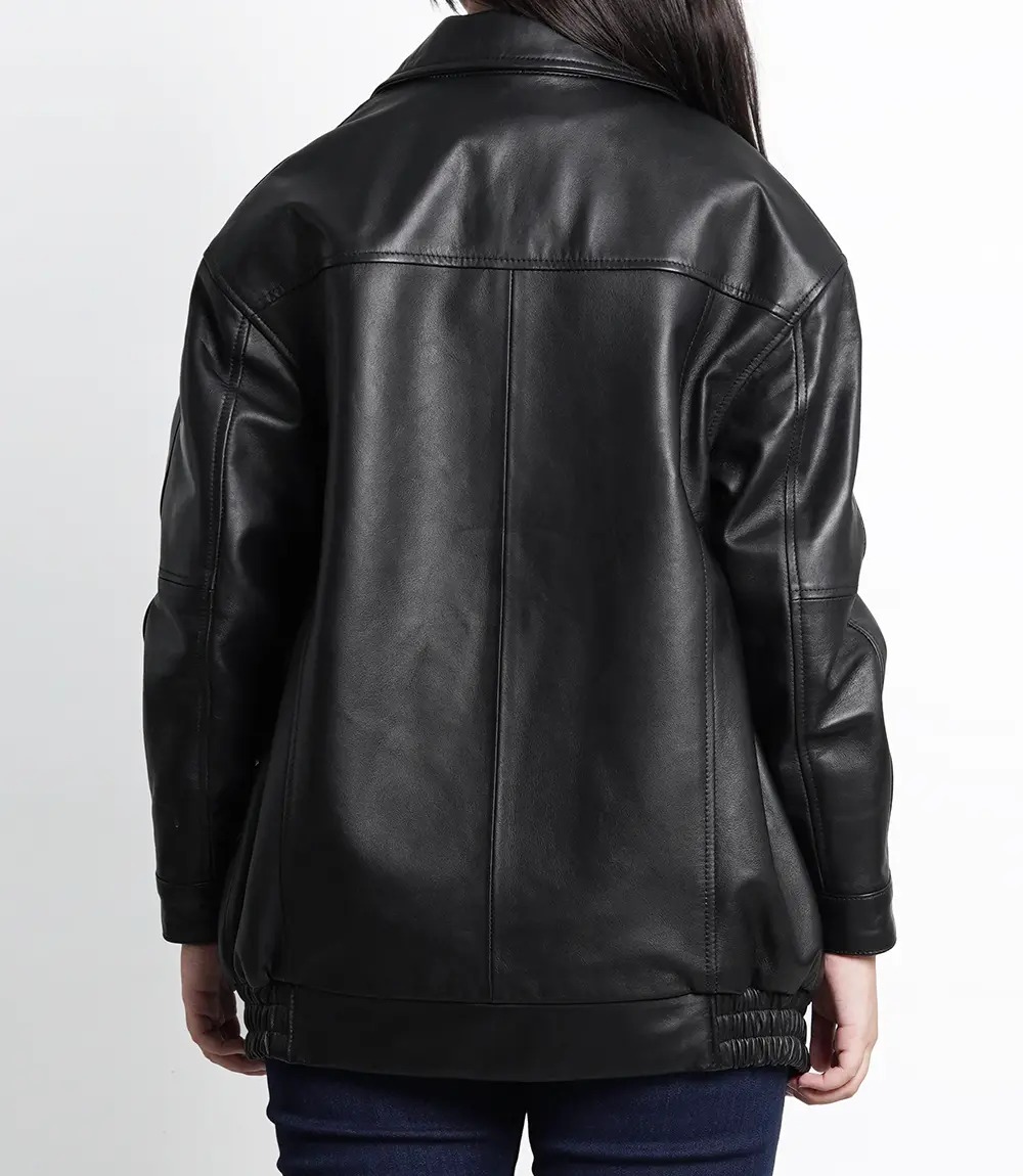 The Bold & Stylish Women’s Black Leather Bomber Jacket combines edgy style with timeless fashion, offering a unique blend of sophistication and attitude. Perfect for women who crave a versatile wardrobe staple that stands out, this oversized bomber jacket is design to make a statement. Whether you’re heading out for a casual outing or dressing up for a night out, this jacket ensures that you stay stylish without compromising on comfort. Made with premium quality leather, it adds a chic touch to any outfit, making it an ideal addition to your collection. Its bold black color enhances its versatile appeal, ensuring it pairs effortlessly with jeans, skirts, or dresses.
