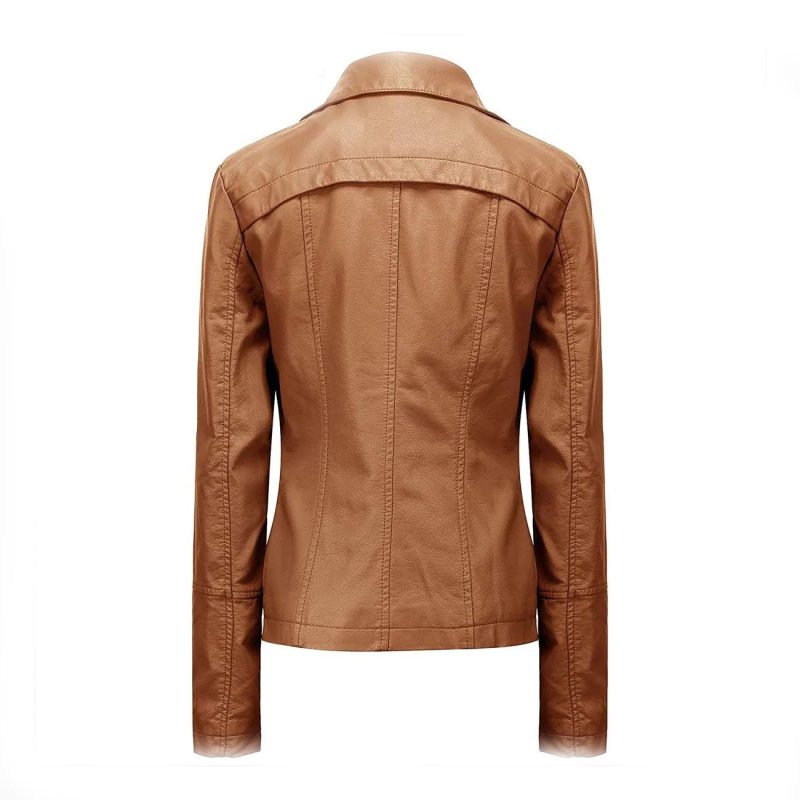 Celebrity Fashion Tall ultimate faux Women leather biker jacket in Brown