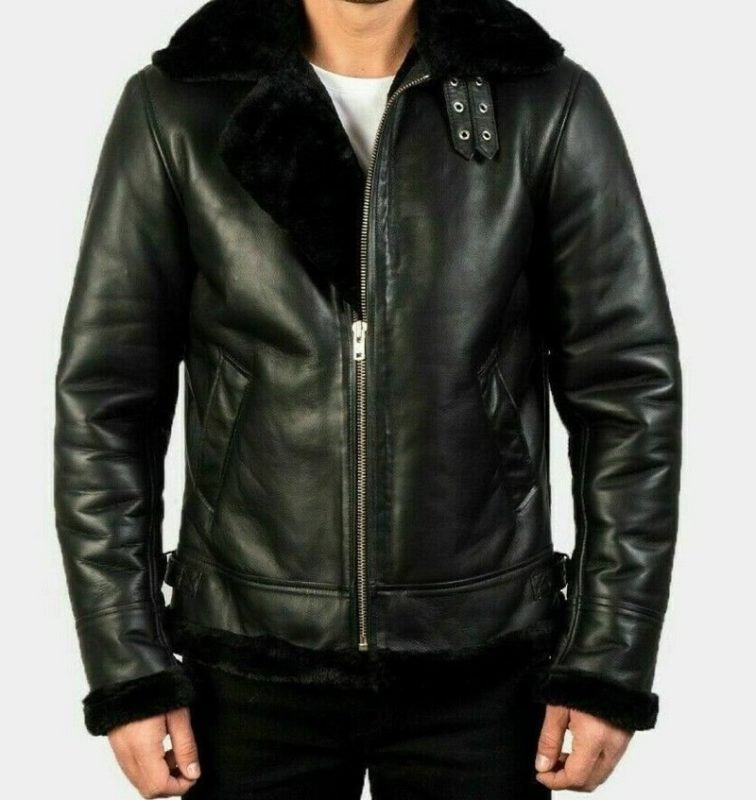 Men’s B3 Aviator Real Shearling Sheepskin Leather Flight Bomber Jacket