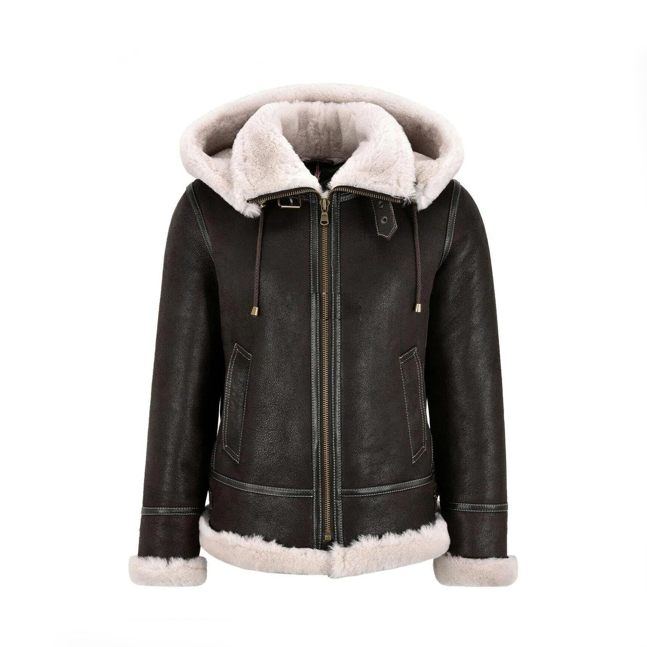 Detachable Hood Ladies B3 Bomber Classic WW2 Sheepskin Jacket