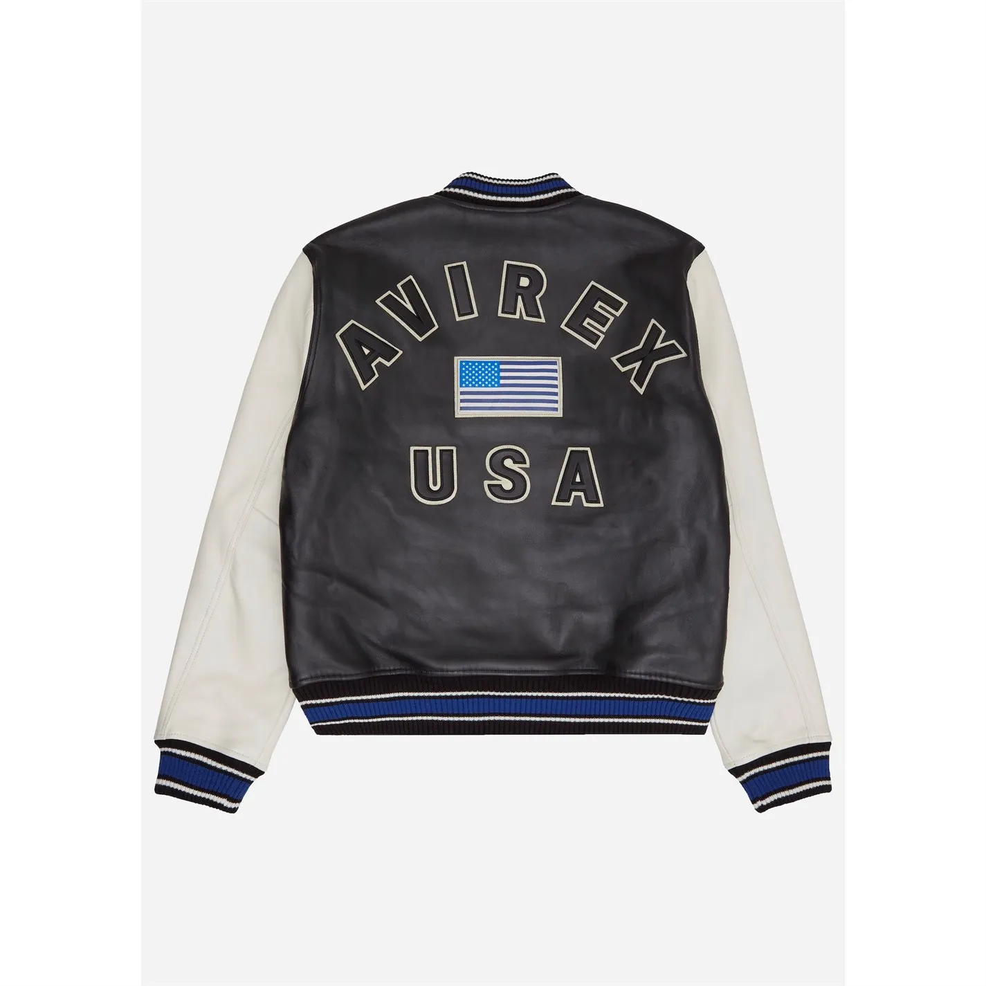 - Design: Classic Avirex branding with embroidered American patches