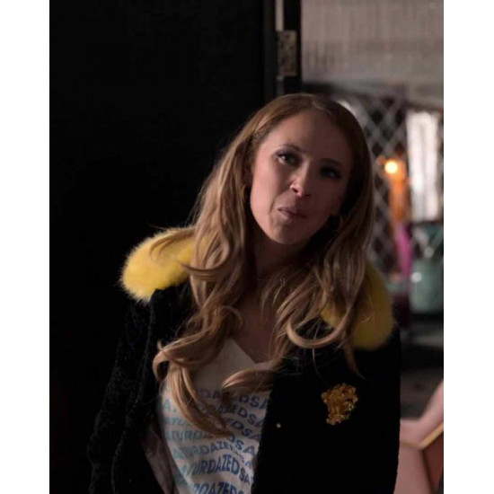 Ted Lasso S3 Juno Temple Black and Yellow Fur Jacket
