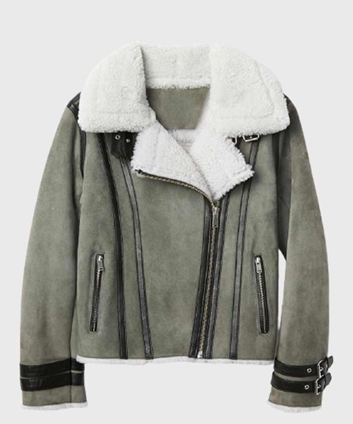 Chelsea Soft Shearling Fur Collar Grey Jacket