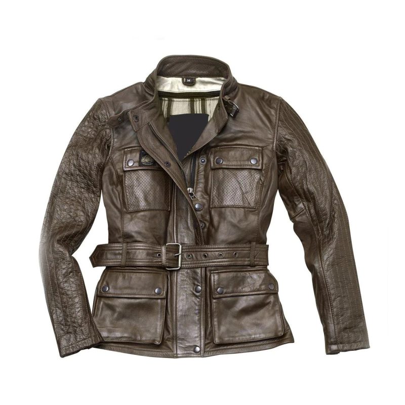 Ladies Coniac Tan Vintage Brando 100% Leather Biker Jacket