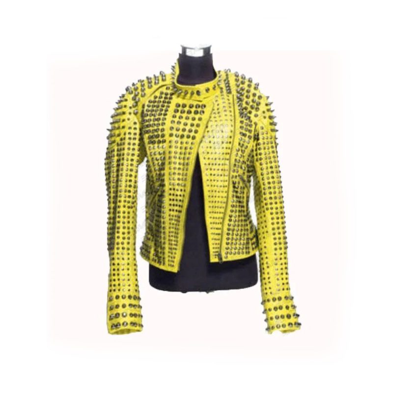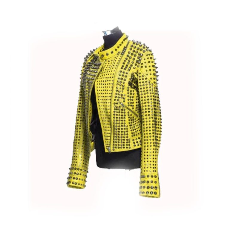 New Handmade Women’s Yellow Fashion Studded Punk Style Leather Jacket