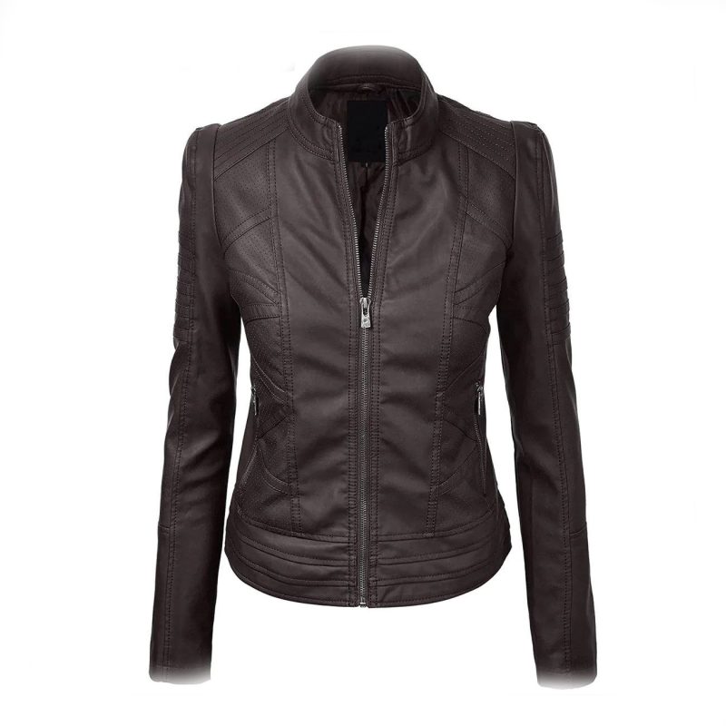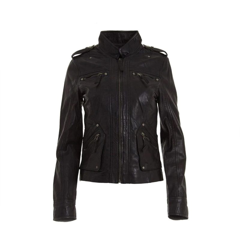 Ladies Womens Classic Black Fashion Soft Nappa Leather Fitted Rock Jacket