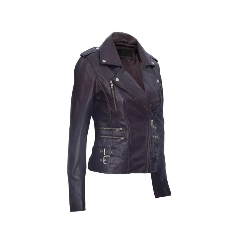 Ladies Purple Real 100% Lamb Nappa Leather Biker Jacket
